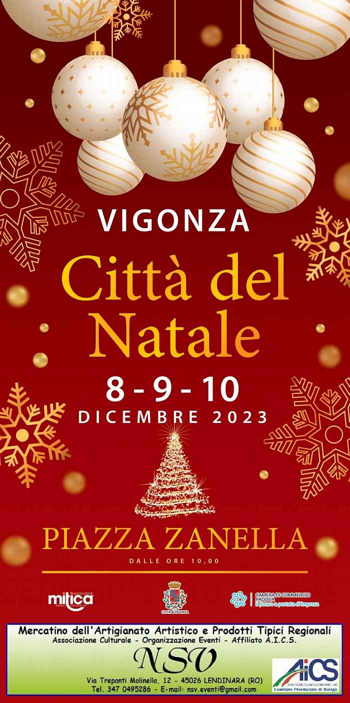 L'Associazione Culturale NSV Organizzazione Eventi APS affiliata A.I.C.S. - Comitato Provinciale di Rovigo, sarà presente in occasione della Manifestazione "Vigonza Città del Natale" nelle giornate dal 08 al 10 Dicembre 2023, a Vigonza (PD), in Piazza Enrico Zanella, dalle ore 09:00 alle ore 19:00 con: