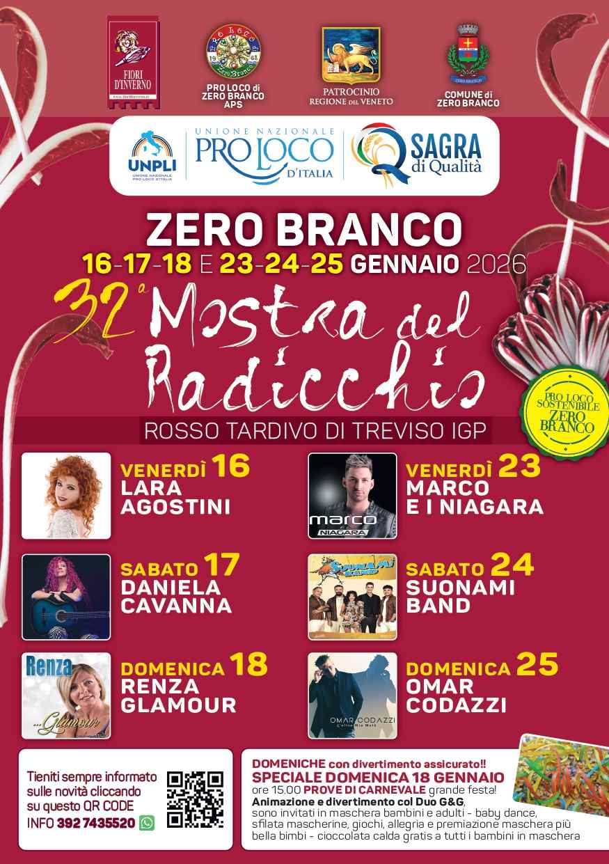 Torna la 30^ Mostra del Radicchio Rosso Tardivo di TV IGP a Zero Branco TV nella tensostruttura della Pro Loco in via Taliercio, vicino al campo sportivo.