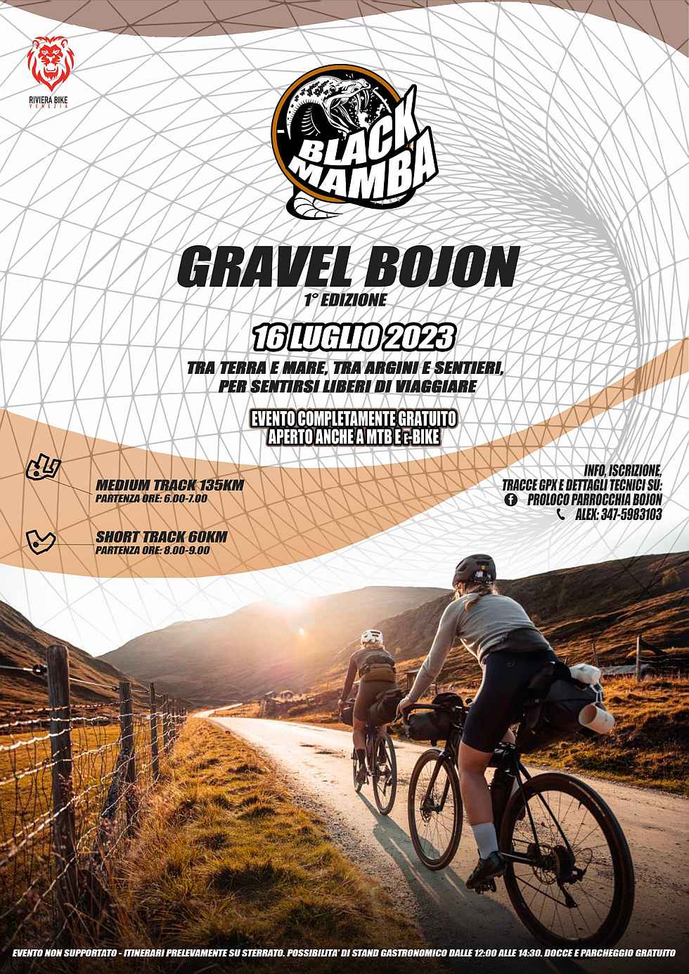 La ProLoco di Bojon in collaborazione con Riviera Bike Venezia, durante la Sagra del Carmine, organizzano domenica 16 Luglio la I° Edizione della BLACK MAMBA- Gravel Bojon.