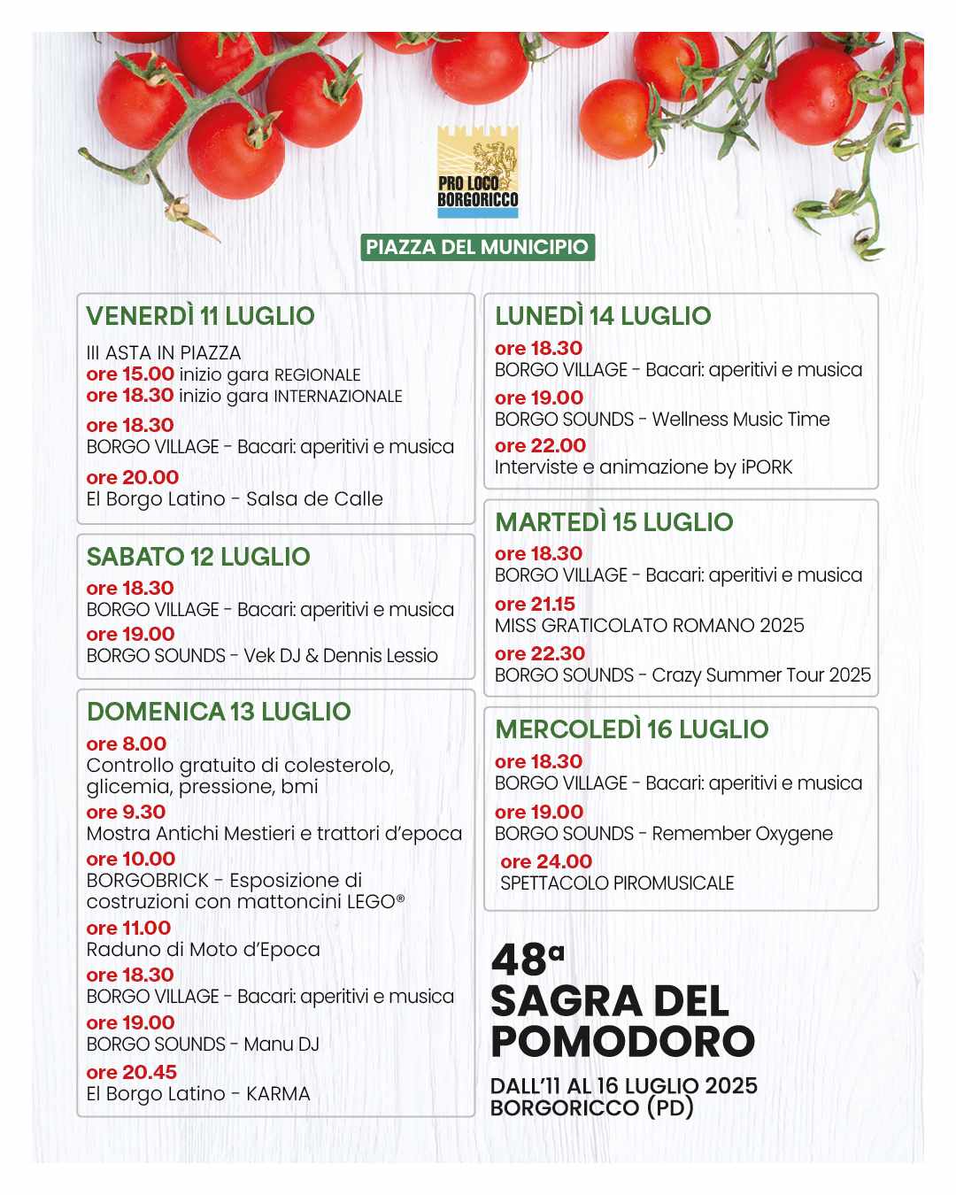 Gli stand gastronomici ed i food truck proporranno ottimi piatti della cucina veneta e italiana. In contemporanea, nella Piazza del Municipio il travolgente intrattenimento a cura della Pro Loco.