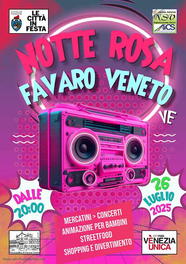 Il cuore di Favaro Veneto è pronto a tingersi di rosa per una serata all’insegna dell’allegria, della musica e della condivisione. Sabato 26 luglio 2025, a partire dalle ore 20:00, in Via San Donà e in Piazza Angelo Pastrello va in scena la "Notte Rosa Favaro Veneto", un grande evento gratuito che animerà le vie del centro con un ricco programma pensato per coinvolgere adulti, famiglie e bambini.