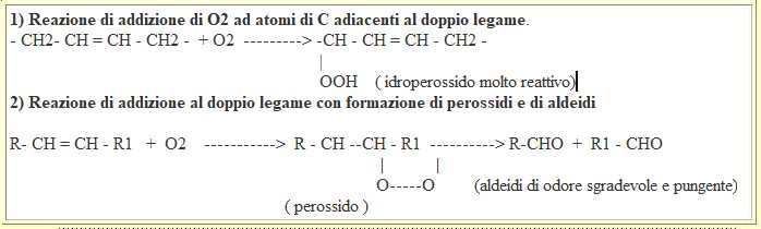 Queste reazioni sono innescate dall’ossigeno atmosferico. Negli oli fortemente insaturi si ha la polimerizzazione, in oli con un numero di insaturazioni non elevate, si ha l’irrancidimento.