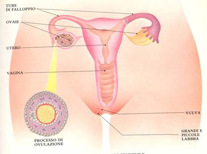 Tutto ciò forma l’apparato riproduttore femminile, la cui parte esterna è costituita da alcune pieghe cutanee, chiamate grandi e piccole labbra, che formano la vulva, dove si trova l’orifizio di accesso alla vagina.
